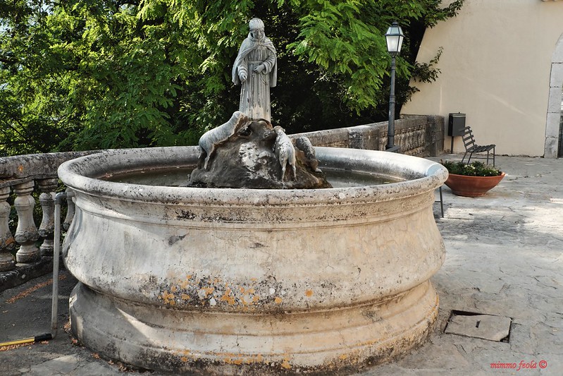 Campania – Piedimonte Matese (CE) – Monte Muto – Il Santuario-Monastero di Santa Maria Occorrevole – Fontana con la statua bronzea raffigurante S. Pasquale Baylon del 1662 [vedi le foto]