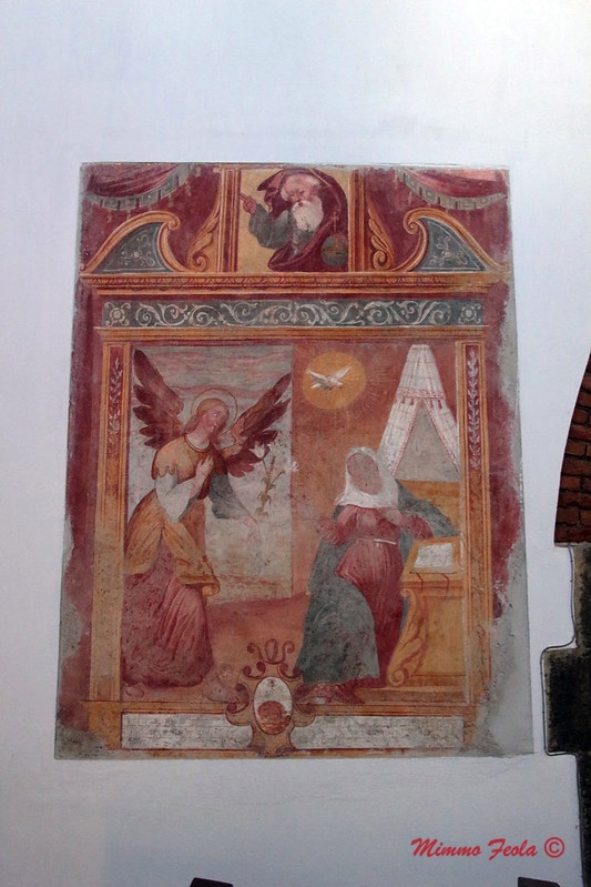 Carinola (CE) – Il convento di San Francesco in Casanova – La chiesa di S. Francesco – Affresco con la scena dell’Annunciazione [vedi le foto]