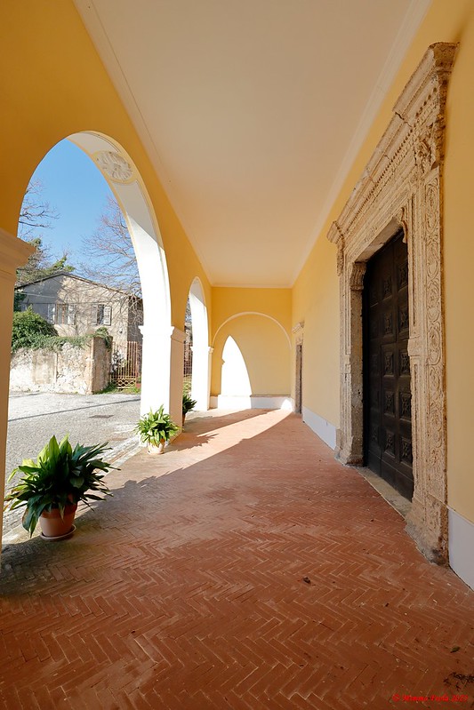 Galluccio – La Collegiata di Santo Stefano – Esterno – Il portico a due arcate con il portale d’ingresso [vedi le foto]